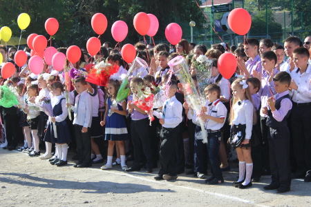 Заметно оживились улицы города в первый день сентября. По улицам шагают нарядно одетые мальчики и девочки: белые банты, черный низ, белый верх, разноцветные шары, букеты цветов – так встречают школьники День Знаний – первый день сентября.