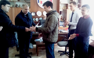 Глава города Анатолий Топал и специалист по делам молодежи и спорта примэрии Руслан Касым поздравили волейбольную команду молдо-турецкого лицея «Оризонт» с победой.