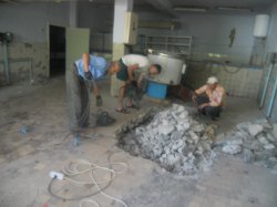 Вторую неделю продолжаются работы по ремонту полов в столовой и пищеблоке в теоретическом лицее №2. Полы