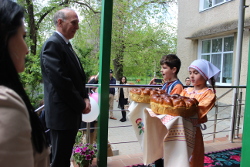 Чадыр-Лунгский детский сад №8 посетили посол Соединенных Штатов Америке в Молдове Джеймс Петтит и шеф Бюро военного сотрудничества при посольстве США Брендан Бартлет.