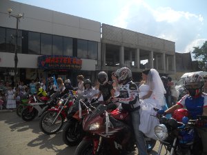 Участницы парада, олицетворяющие молодость, красоту, семью и материнство, прошли свадебным маршем по центральной улице в сопровождении местных байкеров, закончив свое шествие на главной сцене города.