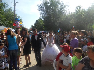 Традиционно невест ждут жители города в городском парке, где проходит их выступление и приветствие гостей.