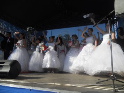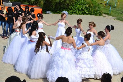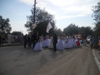 Организатор парада, директор студии красоты Royal Beauty София Маринова передала детям два стола для игры в теннис, а невесты – современный танцевальный флеш-моб, музыка которого менялась от классической до современных треков. Закончился флеш-моб танцем «Хора» - его исполняли невесты вместе с воспитанниками интерната.