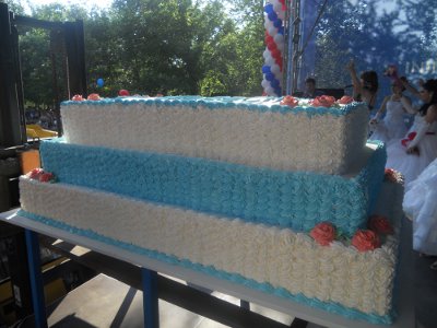 Ярким сюрпризом праздника стал громадный торт от представителей Демократической Партии РМ, которым насладились все желающие.