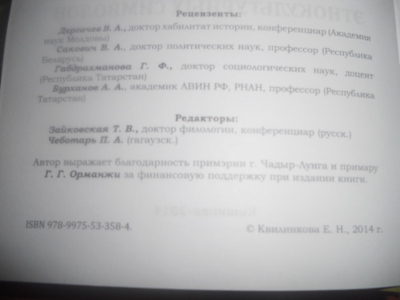 Квилинкова Е.Н выразила благодарность примару города Орманжи Г.Г. за финансовую помощь, которая была оказана при издании книги «Культ волка у гагаузов сквозь призму этнокультурных символов» и других монографий ученого.
