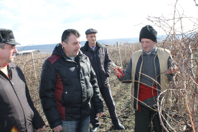 В продолжение семинара состоялась демонстрация традиционного обряда первой обрезки винограда в крестьянском хозяйстве Петра Константинова из Чадыр-Лунги.