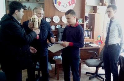 Глава города Анатолий Топал и специалист по делам молодежи и спорта примэрии Руслан Касым поздравили волейбольную команду молдо-турецкого лицея «Оризонт» с победой.