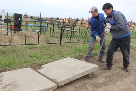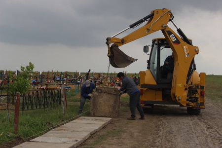 Примария Чадыр-Лунги проводит работы по благоустройству кладбища, расположенного по ул. Мичурина. В рамках работ по благоустройству на кладбище устанавливаются тротуарные дорожки, протяженностью около 200 метров, а также ограждение: бетонные заборы и живая изгородь.
