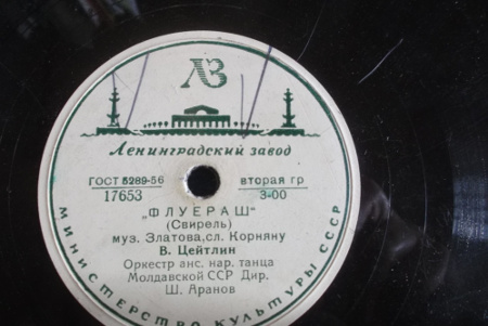 И еще один интересный новый экспонат, показывающий влияние уроженцев юга Молдовы - гагаузов на историю и культуру страны. Это патефонная пластинка 50 -х годов, на которой имя композитора Златова - Шлойме Гольштейн, известного в музыкальной культуре Молдовы, как Семен Владимирович Атанасиу-Златов. В качестве артистического псевдонима «Атанасиу-Златов» были взяты настоящие фамилии двух видных кишинёвских оперных певцов и преподавателей вокала 1920—1930 годов - Гавриила Дмитриевича Атанасиу и гагаузки, уроженки Комрата, первой гагаузской оперной певицы сопрано Марии Фёдоровны Златовой.