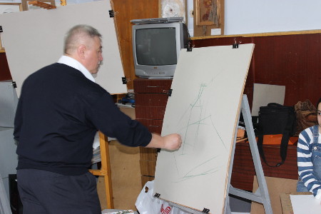 В художественной школе г. Чадыр-Лунга 1 марта состоялся мастер-класс молдавских художников Ливиу Хынку и Георге Цэрнэ. Данное событие прошло в рамках мероприятия «Встречаем весну красками», организованного чешской неправительственной организацией People in Need и посольством Словакии. Вместо привычного трехмерного изображения (цвет, воздух, объем) юным художникам было предложено использовать в работе двухмерное - цвет и линия. Выбранный художниками метод воссоздания натюрморта на бумаге для ребят оказался непривычным и заставил потрудиться над поставленной задачей. «Ломать» правильные линии и формы привычного трехмерного пространства оказалось очень сложно.