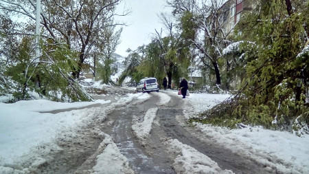 В связи со сложными погодными условиями местные власти призывают горожан быть бдительными и осторожными, без надобности не выходить из дома, так как ветви продолжают падать.