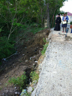 Как рассказывает матушка Елизавета, оползень имеет уже трехгодичную историю. Несмотря на предпринятые ранее меры по приостановке его разрастания путем бурения скважин, укрепленных железобетоном, не принесли ожидаемого результата, и на сегодняшний день оползень продолжает прогрессировать.